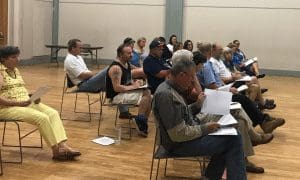 250th Committee Chairman Jim Putnam and member Russ Fox are discussing the 250th celebration during a past meeting at the Southwick Town Hall. (WNG File Photo)